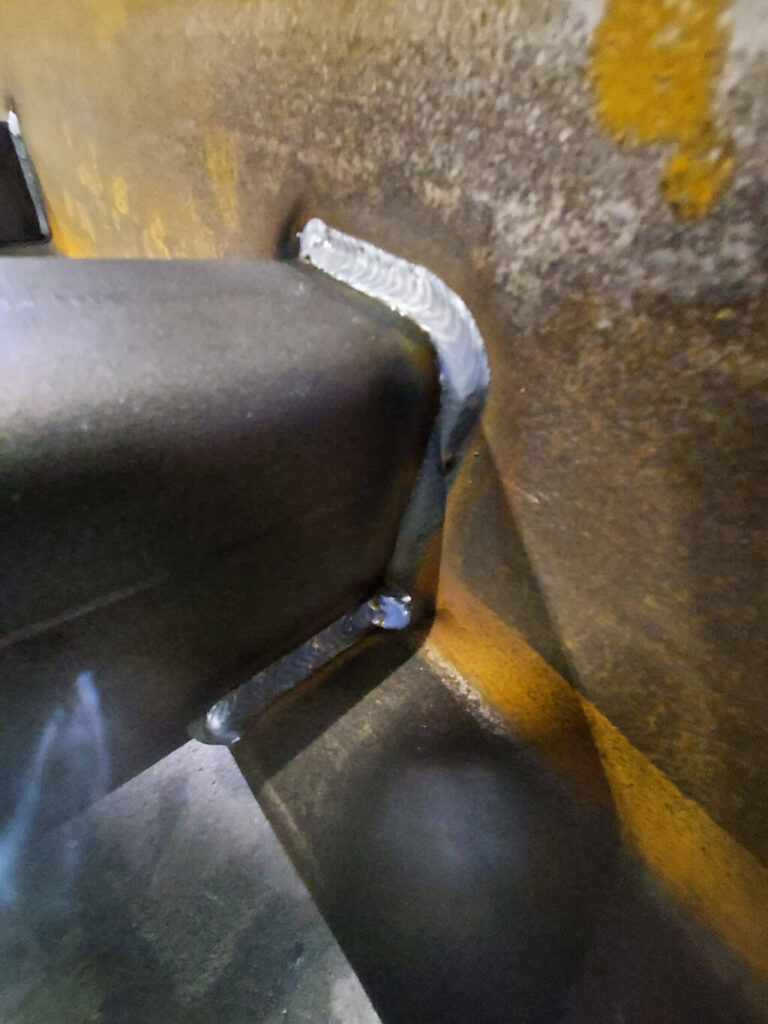 I tilfælde af at konstruktionen skal galvaniseres, vil syren kunne komme ind i dette lille hul, imens zinken ikke kommer ind, og det vil derfor være et svagt punkt for korrosion. Hen over svejsesømmen kan der naturligt opstå behov for start/stop.